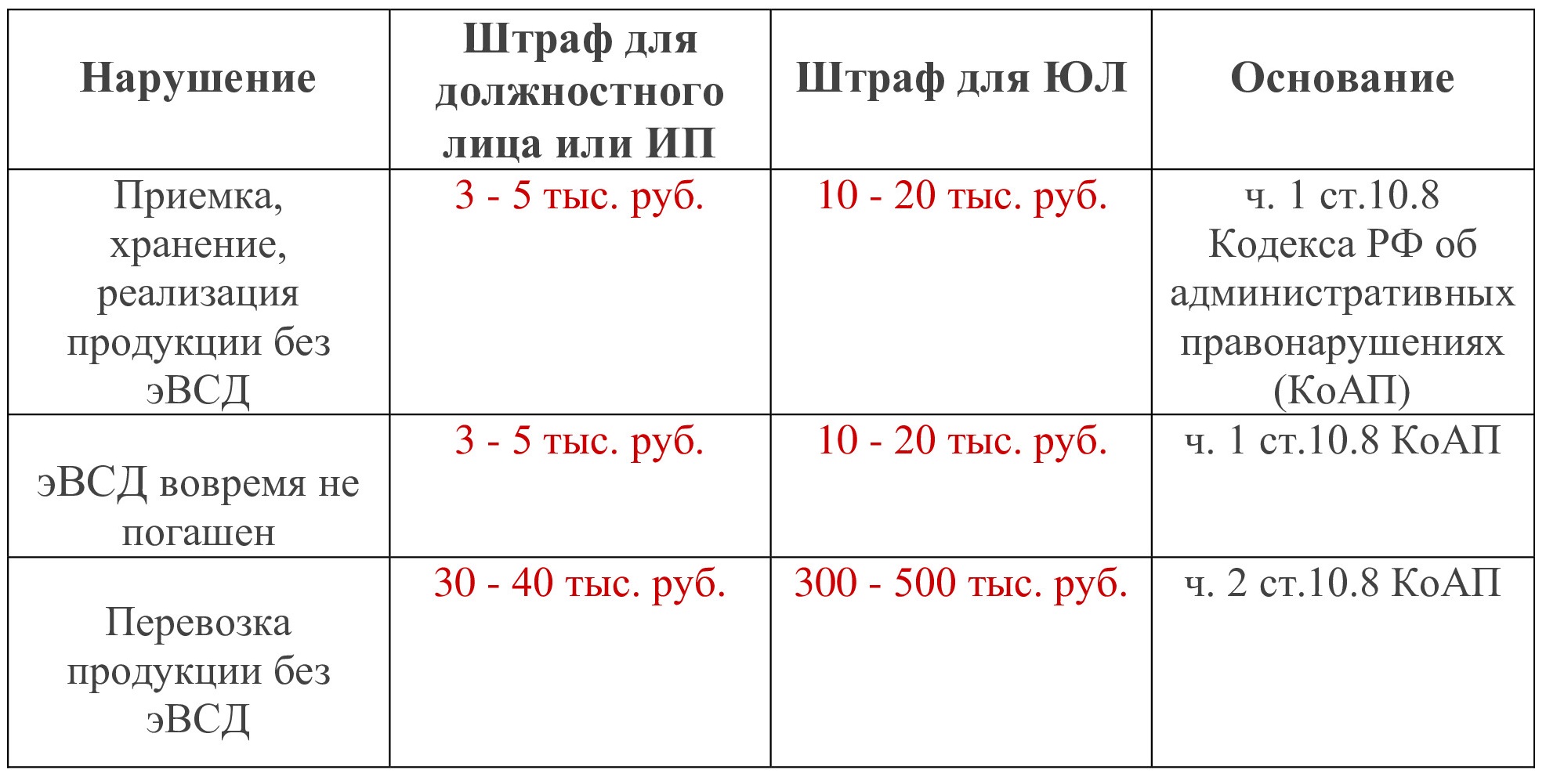 Так, частью 1 ст. 10.8 КоАП РФ предусмотрена ответственность за нарушение ветеринарно-санитарных правил перевозки, перегона или убоя животных либо правил заготовки, переработки, хранения или реализации продуктов животноводства. Применяться эта статья может, например, в случае принятия мясной продукции без необходимых ветеринарных документов либо использования недействительного сертификата. Штраф за такое нарушение составит:
