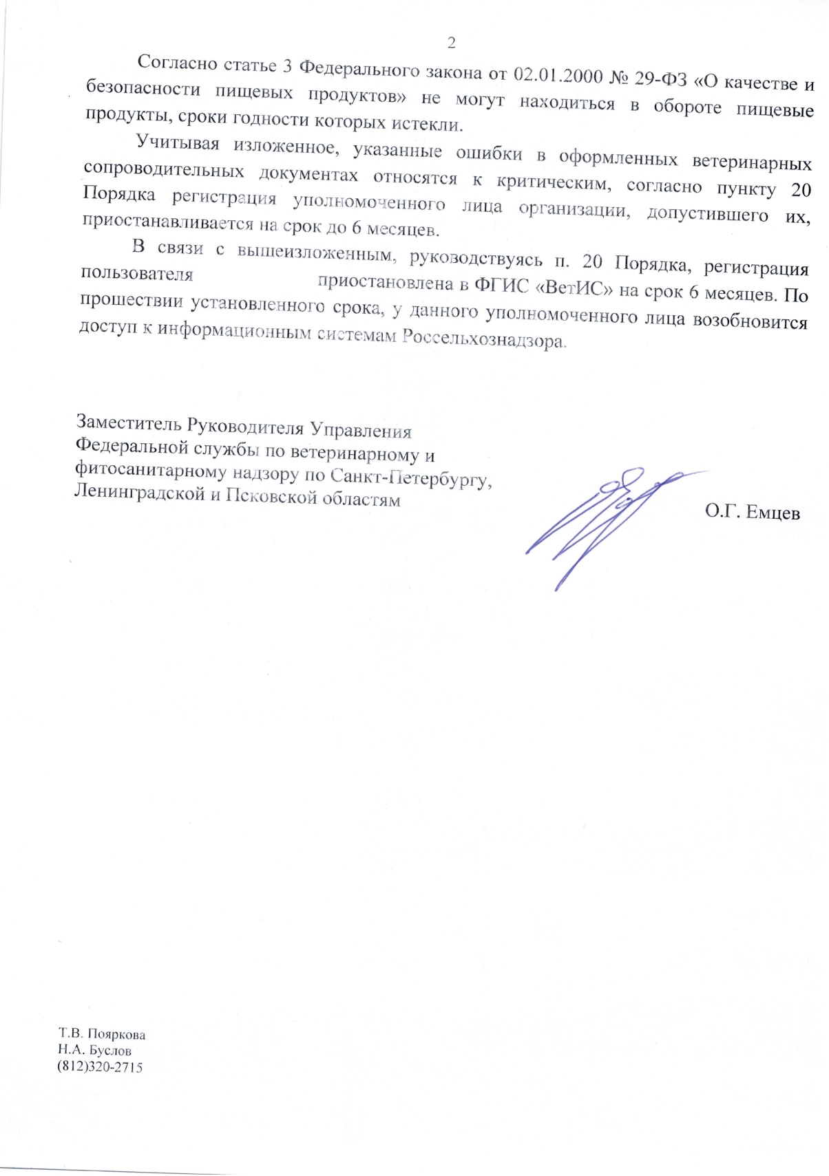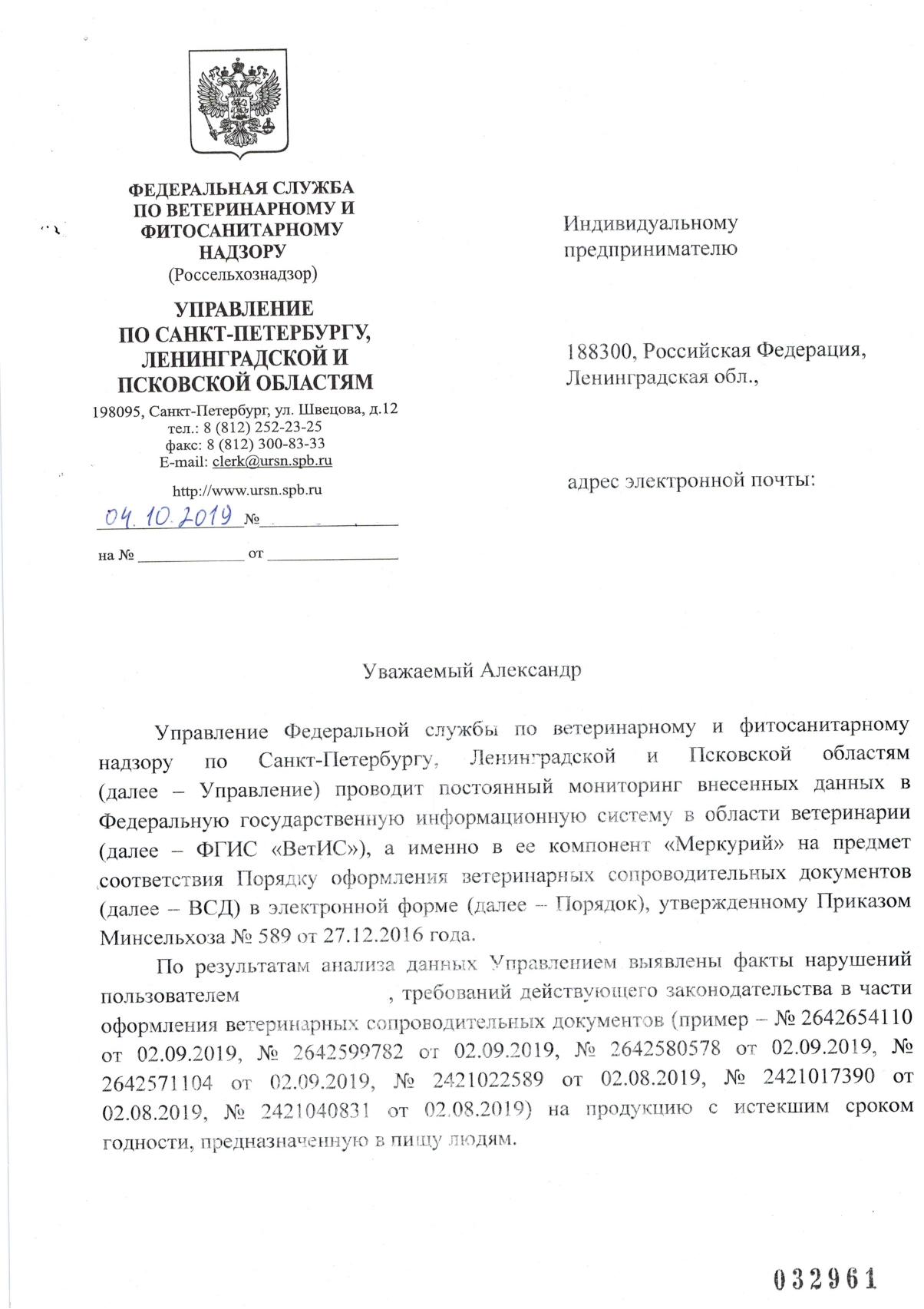 • оформление ВСД на продукцию с истекшим сроком годности;